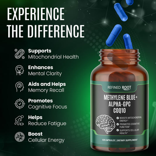 Methylene Blue Pharmaceutical Grade 10mg with CoQ10 500mg and Alpha GPC Supplement 300mg